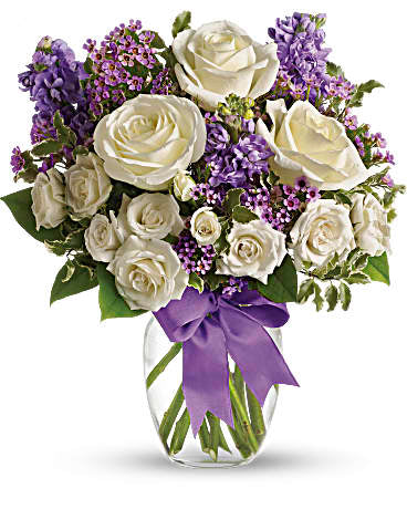 Lavish. Luxurious. and LAVENDER. This bouquet is absolutely stunning. Stargazer lilies, lavender roses, and purple carnations are combined for a stunning effect that is sure to leave them breathless. Make their day absolutely amazing with this once in a lifetime bouquet.